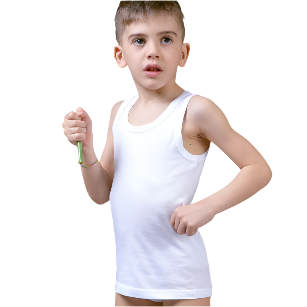 Canotta spalla larga bambino in pregiato cotone pettinato, senza cucitura sui fianchi, della Nottingham.