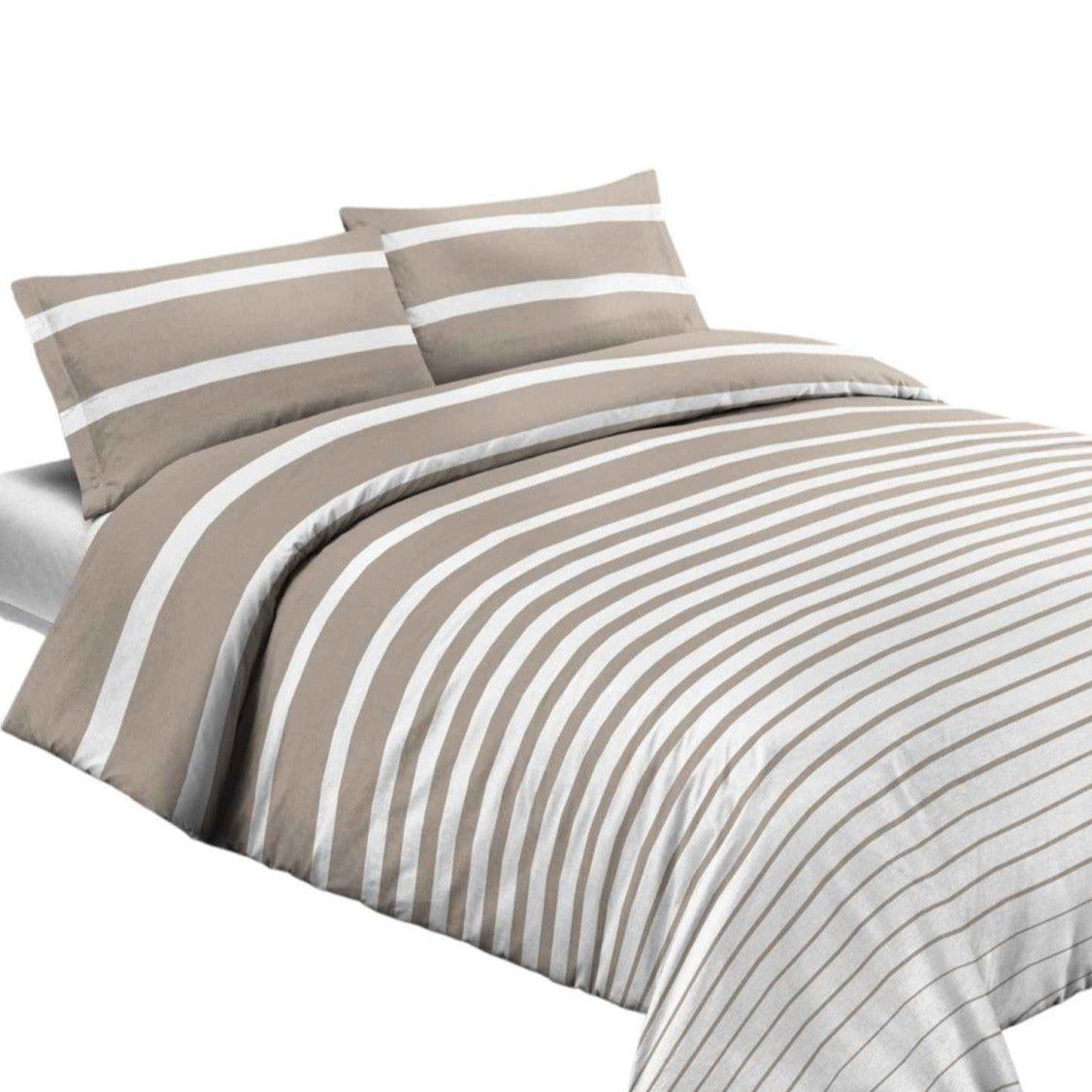 Completo Lenzuola Rigato 100% Puro Cotone Made In Italy nella colorazione tortora. Disponibile nelle seguenti misure