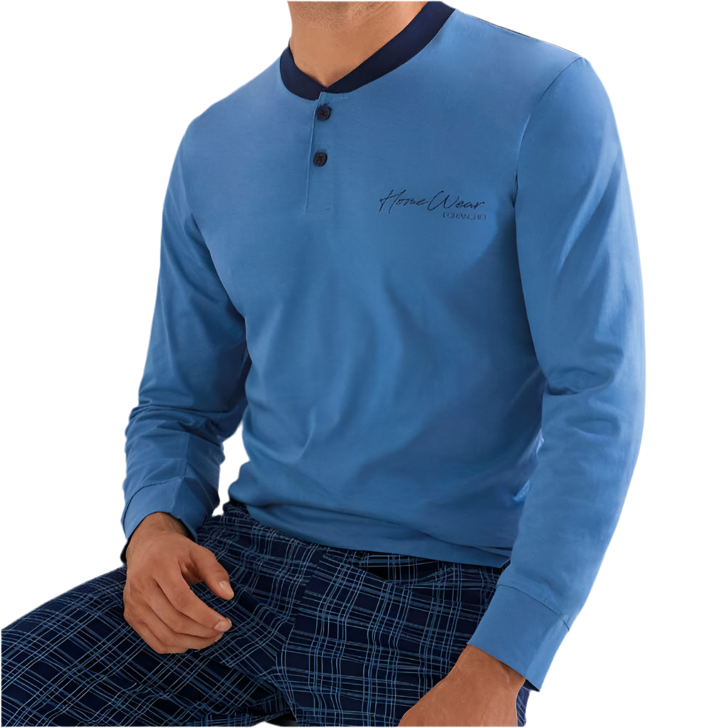 Il pigiama uomo Granchio è la scelta perfetta per chi cerca un comfort eccellente e un design elegante. Realizzato in cotone morbido e traspirante, questo pigiama garantisce una sensazione di freschezza e benessere durante tutta la notte. Il modello presenta una maglia a maniche lunghe e pantaloni lunghi, entrambi caratterizzati da una vestibilità comoda e pratica.