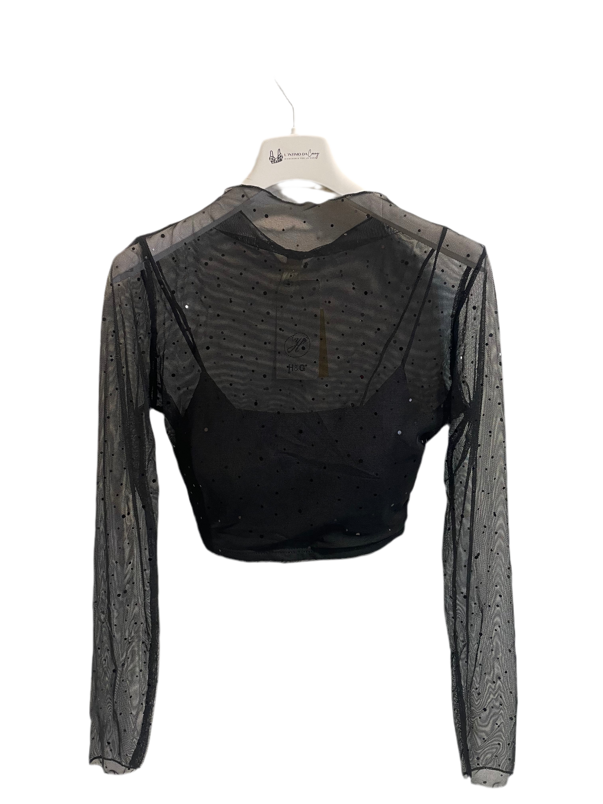 Realizzata con materiale di alta qualità, questa maglietta è decorata con brillantini che la rendono unica e brillante.