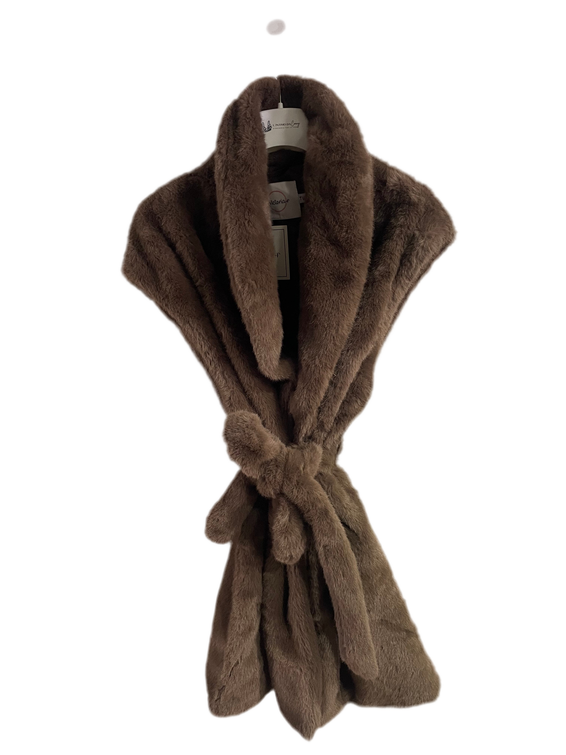 Questa pelliccia smanicata è di morbida pelliccia disponibile in marrone scuro e chiaro