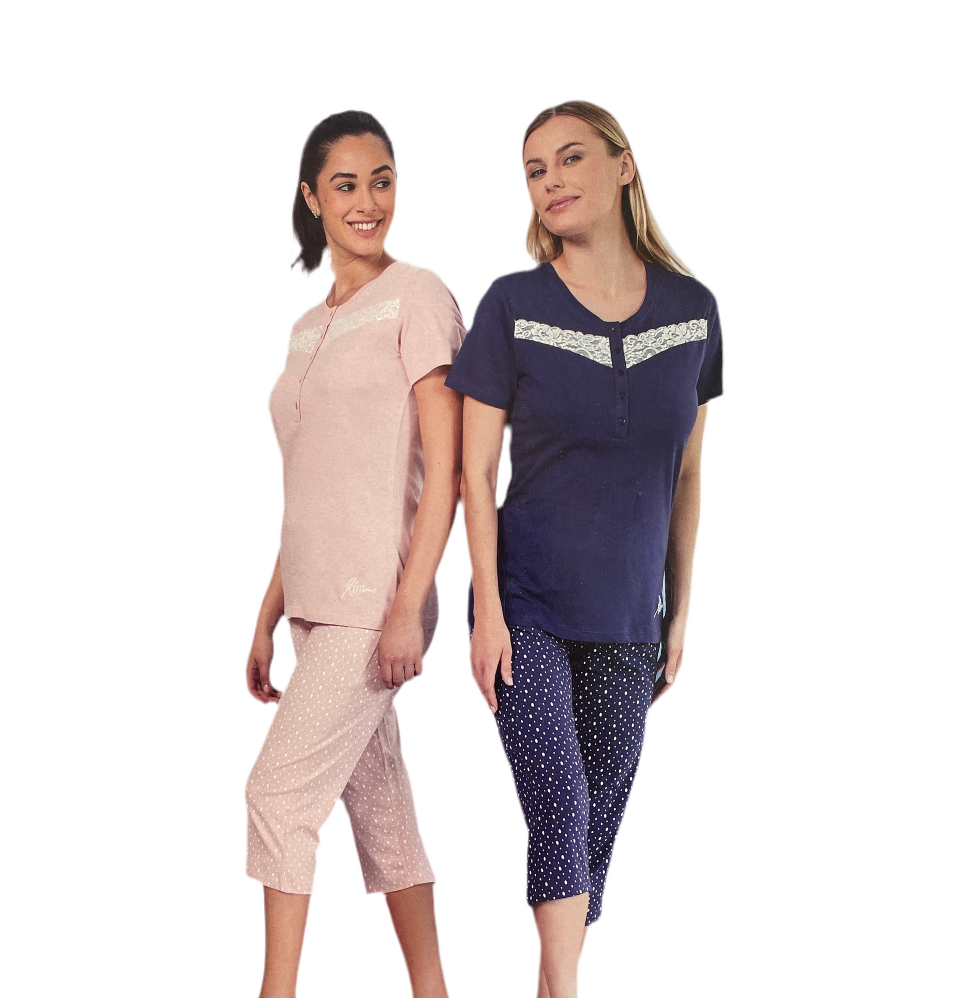 Pigiama bianca luna calibrato in cotone a pinocchietto e manica corta.