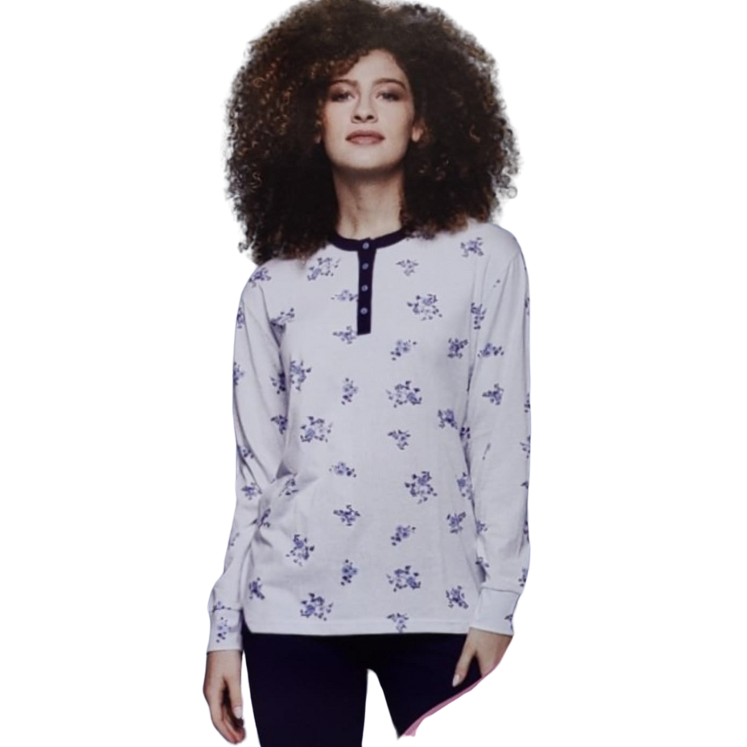Pigiama cippi per taglie forti interamente in cotone. Maglia a manica lunga con bottoni frontali.
